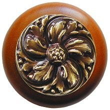 Notting Hill NHW-714C-AB, Chrysanthemum Wood Knob in Antique Brass /Cherry Wood, English Garden