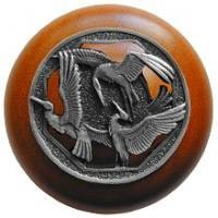 Notting Hill NHW-737C-AP, Crane Dance Wood Knob in Antique Pewter/Cherry Wood, Arts & Crafts