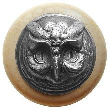 Notting Hill NHW-711N-AP, Wise Owl Wood Knob in Antique Pewter/Natural Wood, Great Outdoors