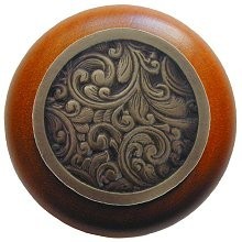 Notting Hill NHW-759C-AB, Saddleworth Wood Knob in Antique Brass/Cherry Wood, Classic