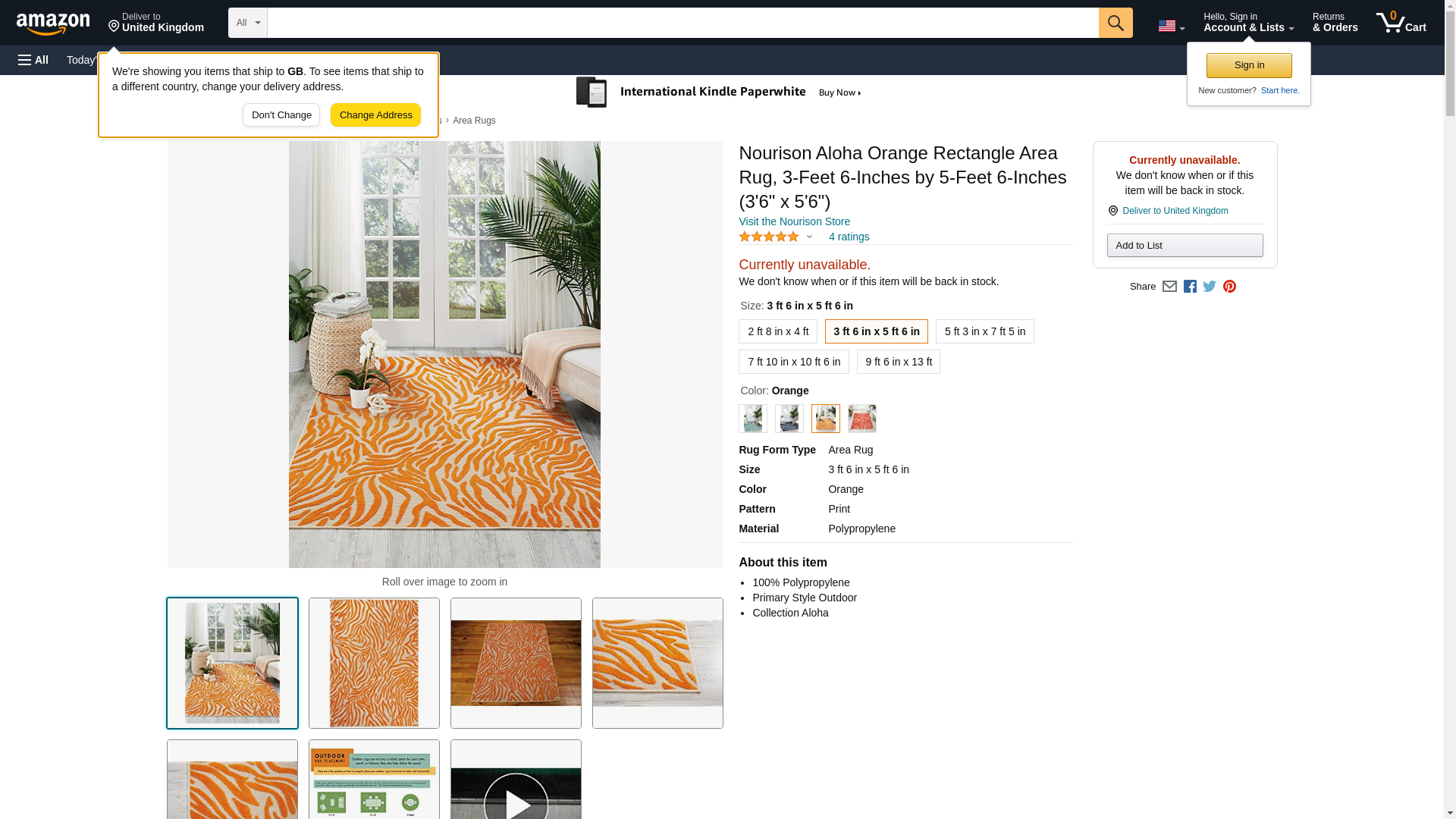 Nourison Aloha Orange Rectangle Area Rug, 3-Feet 6-Inches by 5-Feet 6-Inches (3'6" x 5'6")