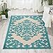 Nourison Aloha Indoor/Outdoor Aqua 3'6" x 5'6" Area-Rug, Tropical, Botanical, Easy-Cleaning, Non Shedding, Bed Room, Living Room, Dining Room, Deck, Backyard, Patio (3x5)