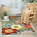 Nourison Fantasy Aqua 2'6'' x 4' Area-Rug, Modern, Floral, Bed Room, Living Room, Dining Room, Kitchen, Easy-Cleaning, Non Shedding, (3' x 4')