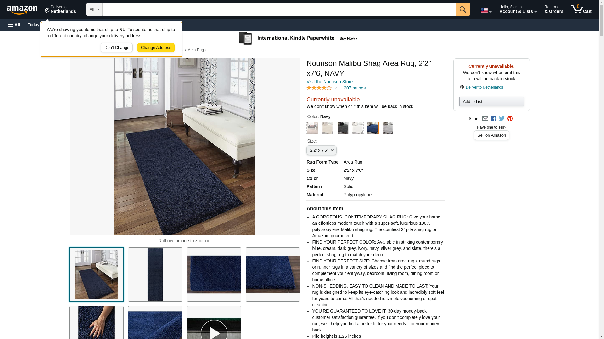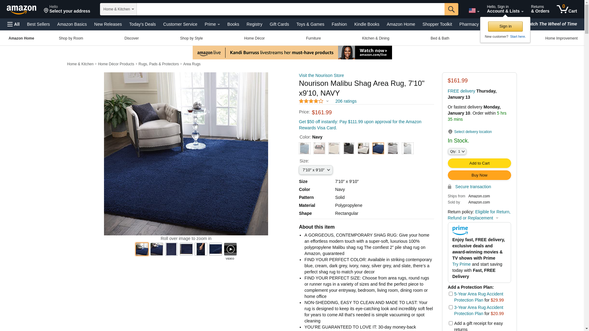 ThereÂ?s nothing like a sensational shag design to transform even the most ordinary of rooms into something extraordinary. The Malibu collection of shag area rugs from Nourison was inspired by the luxurious homes of Malibu, California. These Malibu shag rugs are expertly designed in distinctive sizes and shapes to perfectly fit any room. Featuring a sumptuously thick 1-inch pile and a marvelous power loomed polypropylene fabrication for a terrifically plush texture and stunning sheen, these remarkable rugs are utterly lavish in their look and feel. With its positively plush and lush fabrication, fabulously thick pile and sensational sheen, this Malibu shag area rug from Nourison is as extravagant to the eye as it is underfoot. In a smashing shade of navy, this sensational power-loomed shag rug will bring a fashion-forward flair to any room.