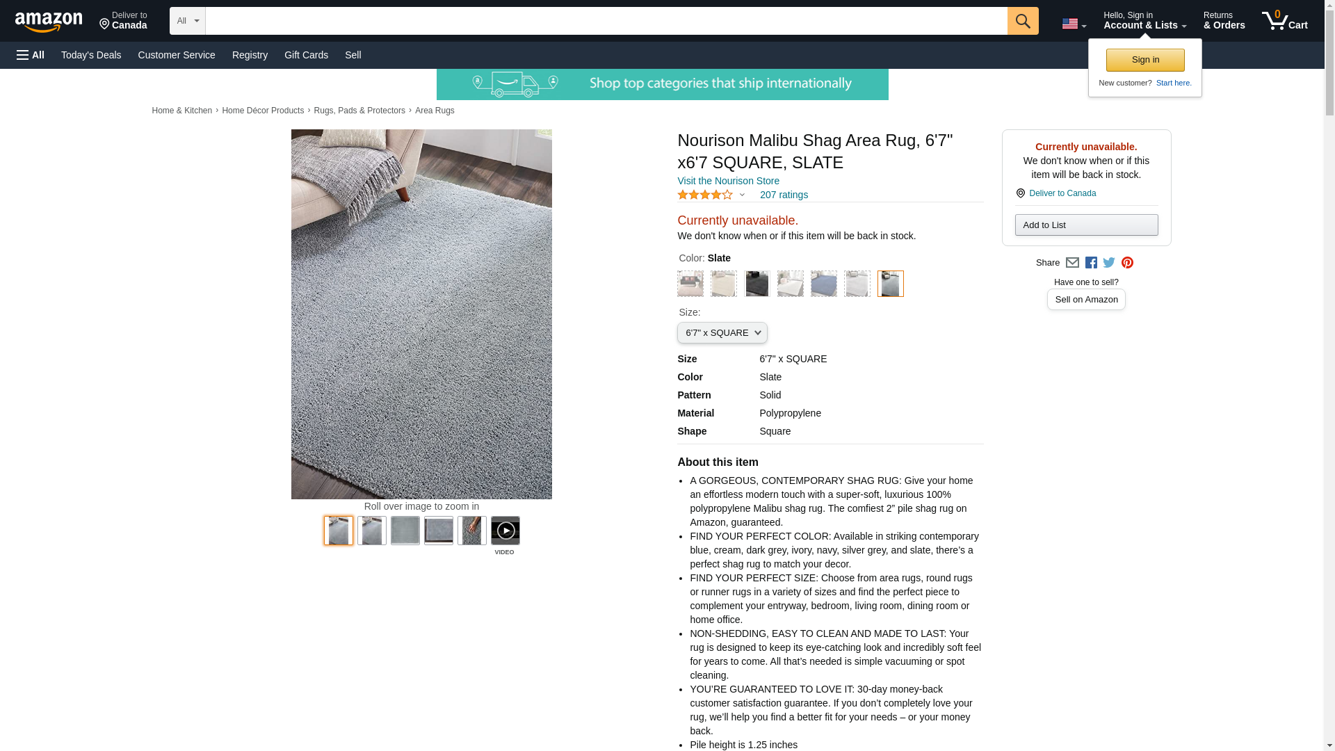Nourison MSG01 Malibu Shag Area Rug, 6'7" x6'7, SLATE
