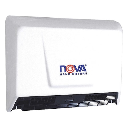 Hand Dryer, Integral Nozzle, Steel, Automatic, White, Dry Time 30 sec, 120/208/240 Voltage, 15/10/8.7 Amps, ADA Compliant No, Painted, Air Flow Rate 220 cfm, 70 Degrees F Above Ambient Max. Air Temp., Wall Mounting, Height 9 29/32 in, Depth 4 19/64 in, Width 13 51/64 in, 1800/2400 Watts, 74 Sound Level dB, UL/CUL Listed, Includes Cover Removal Tool, Ligature Resistant Yes