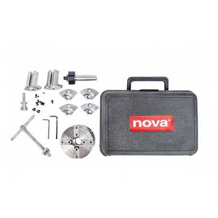 <p>The NOVA 48265 G3 Chuck Pen Turning Bundle provides excellent value and is presented in a sturdy storage/carry case. The bundle includes the NOVA 48232 G3 Direct Thread Chuck for 1" x 8TPI Spindles with 50mm jaws, NOVA 6034 Pen Plus Jaws, NOVA 9049 Mandrel Saver, chuck handle, woodworm screw, fastenings and manual. The package gives you 26% savings over buying the items individually, and gives you great flexibility when turning pens. The NOVA G3 Chuck is precisely machined from 1045 machine grade steel, and comes with anti-release spindle lock. This chuck is a dedicated threaded 1"8TPI RH/LH version, exclusively for use on the NOVA Comet II Mini Lathe (and other lathes with a 1" x 8 TPI spindle) This ensures the chuck will stay securely mounted on the lathe, throughout forward and reverse turning applications. The NOVA G3 chuck features a one handed, geared operation, for fast opening and closing, ideal for production turning of smaller pieces. The gears are strong and smooth. The NOVA G3 Chuck comes with advanced features such as automatic jaw safety stop so jaws won't extend past the chuck, copper infused jaw slides which provide lubrication and resistance to wear. The small chuck size and weight minimizes loads on small spindles and bearings. The NOVA G3 chuck takes all 26+ NOVA accessory Jaws in the range (exception of Infinity and Titan III) to extend your capacity to tackle a wide range of projects. The NOVA Pen 'Plus' Jaws easily convert your NOVA chuck into a fast and accurate Pen Blank drilling facility. The big jaw profile provides a vibration free, solid grip for all sizes of pen blanks and an accurate centered hole every time. Being able to finely control the drill feed on the lathe is a big advantage to prevent break out on those delicate pen walls. Also perfect for squaring up the pen blank ends after gluing in the pen kit tubes. The Nova 9049 2MT Pen Mandrel Saver is perfect for saving the center point and the Pen Mandrel shaft from damage caused