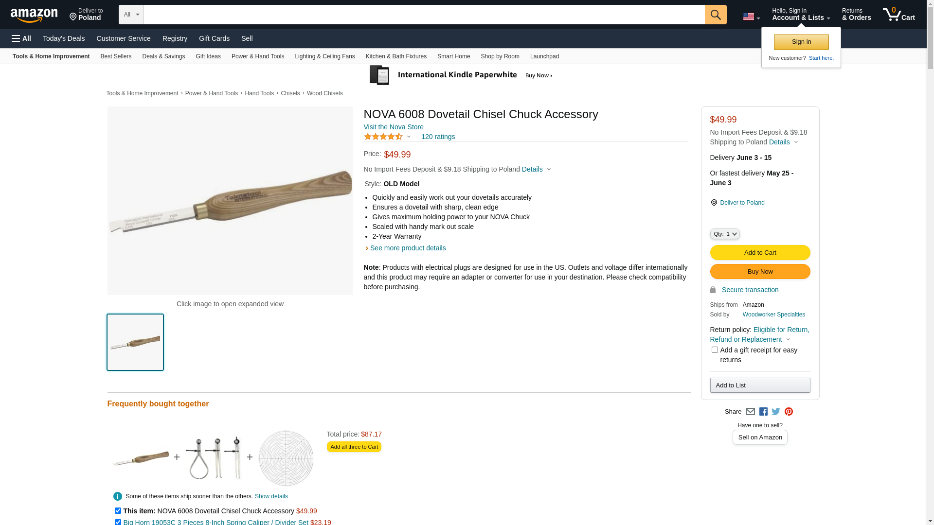 NOVA 6008 Dovetail Chisel Chuck Accessory is an accessory for NOVA Chucks. It enables the user to quickly and accurately make the dovetail recess for the chucking of a bowl. Ensures a dovetail with a sharp, clean edge to match up exactly to the dovetail contour of the NOVA Accessory Jaws, to give maximum holding power to your NOVA Chuck. Scaled with a handy mark out scale for use as a guide. Designed by the innovators of the 4 Jaw Chuck for wood turning, Teknatool International - since 1955. Backed by a full replacement 2-year warranty. Call our customer service center toll free on 1-866-748-3025.