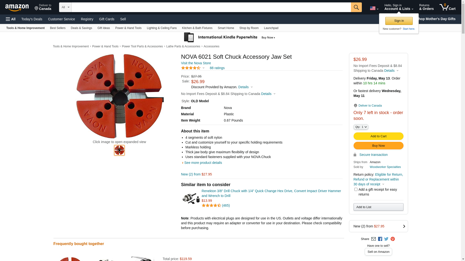 NOVA 6021 Soft Chuck Accessory Jaw Set an accessory for NOVA Chucks designed to expand your range and capacity of your standard NOVA Chuck for specific projects and applications. Universally fits to any NOVA Chuck for maximum flexibility, saving money as duplicate accessories are not needed for different NOVA Chucks. NOVA 6021 Soft Chuck Accessory Jaw Set is a unique set made from soft nylon that the user can cut, mould and customize to their requirements for special work holding. These provide mark less holding - the nylon material holds most woods without marking. The thick jaw body provides flexibility of design. Comes with 4 jaw segments of soft nylon and instructions. Uses the same fasteners as supplied with your NOVA Chuck. Designed by the innovators of the 4 Jaw Chuck for wood turning, Teknatool International - since 1955. Backed by a full replacement 2-year warranty, warranty void once customized. Call our customer service center toll free on 1-866-748-3025. Some accessories such as larger jaws are only suitable for use on the larger NOVA Chucks, please check manual prior to use.