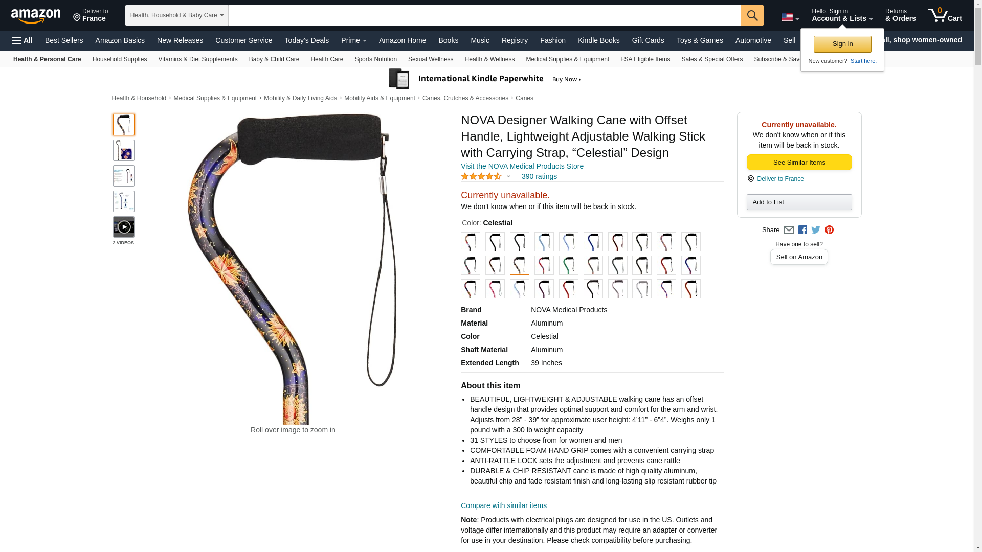 | Feature | Lightweight and sturdy cane with an offset shape that provides excellent support for the wrist. Weighs only 1 pound with a 300 pound weight capacity |
