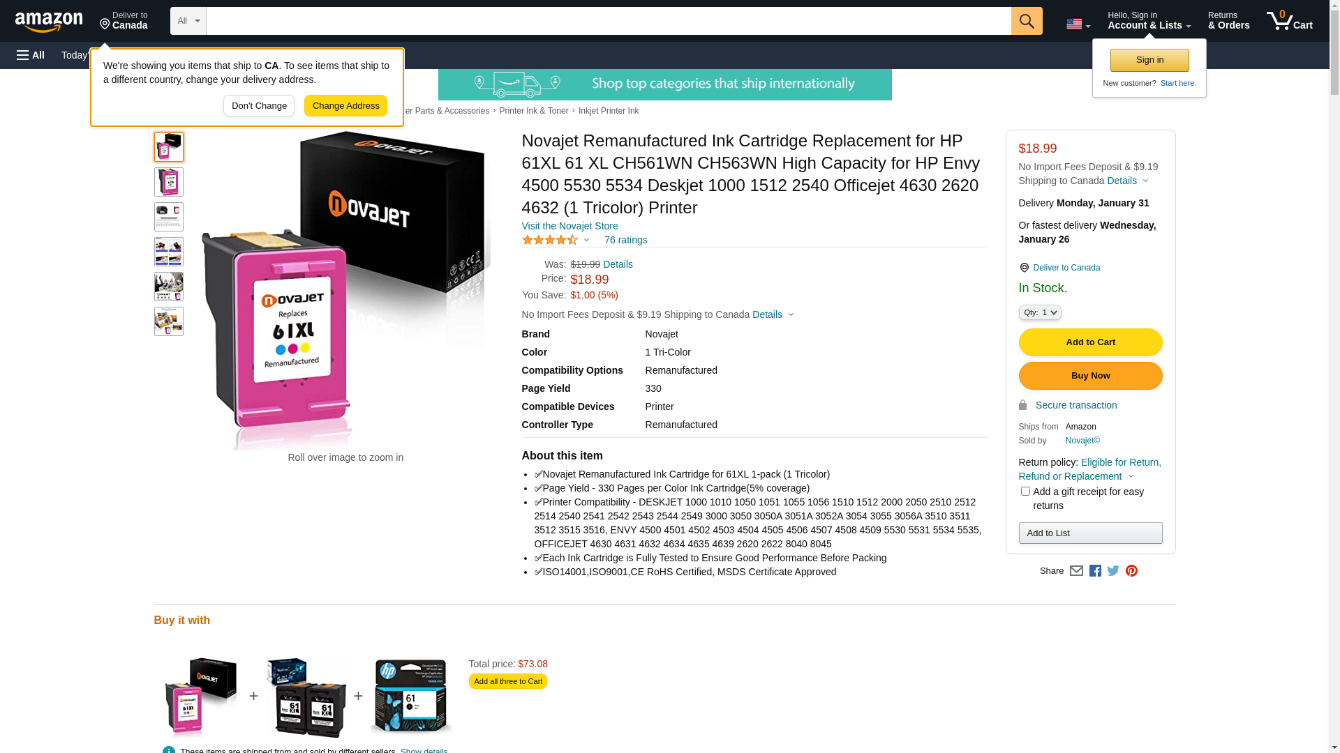 - ✅Novajet Remanufactured Ink Cartridge for 61XL 1-pack (1 Tricolor)