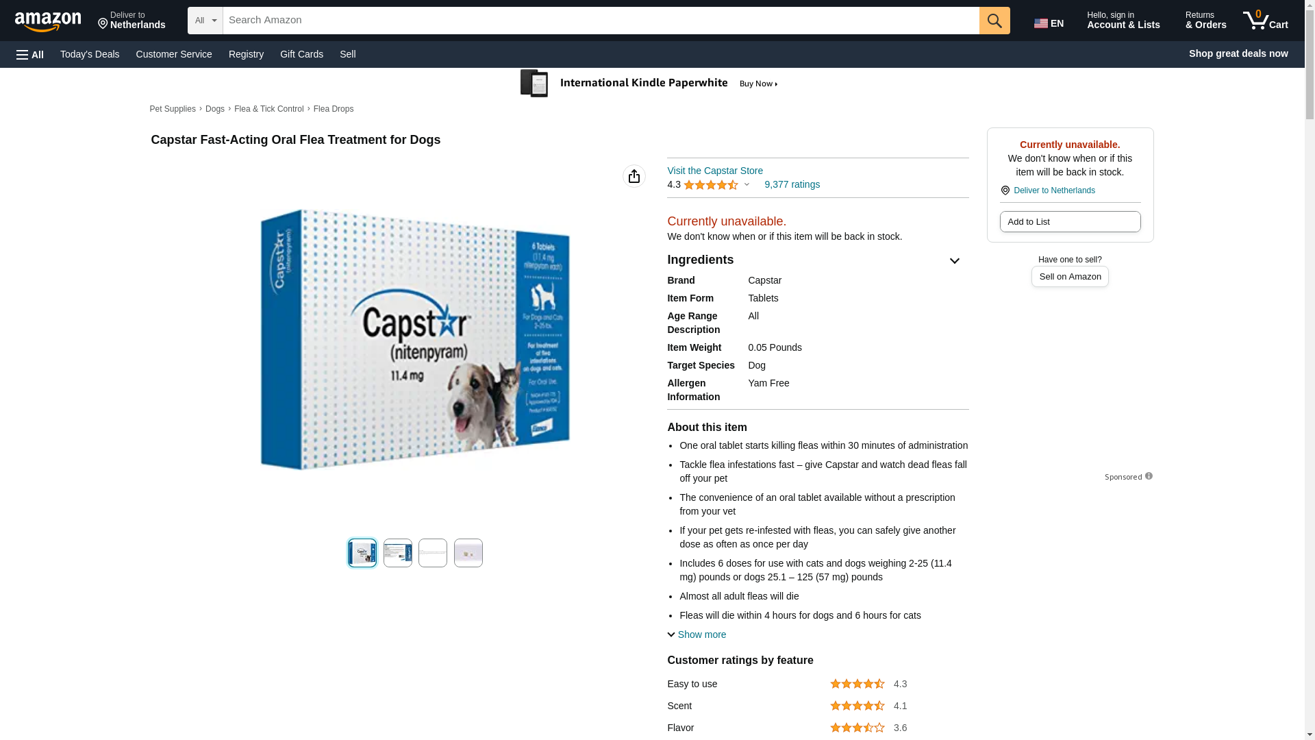 <p><b>Novartis Capstar Flea Treatment - Because your Dog deserves to be Flea free</b></p><p>Capstar Flea Treatment is the ultimate solution for your dog's persistent flea problems-- with effective ingredients which kills fleas in just 30 minutes. Capstar Flea Treatment is gentle. Suitable for adult dogs as well as pregnant females and puppies as old as 4 weeks and weighing around 22 pounds. With Capstar, eradication is easier and relieves your dog and cat of these uncomfortable parasites within minutes of application.</p><p>Novartis Capstar Flea Treatment</p><ul><li>Works in a span of 30 minutes</li><li>Suitable for adult dogs as well as pregnant females and puppies</li></ul><p><b>A Closer Look: </b>Novartis Capstar Flea Treatment begins to work in a span of 30 minutes to eradicate adult fleas. Just on application and you will see the fleas dropping off your pet's body.<br /><br /><b>Made Especially for: </b>Dogs of all ages</p>