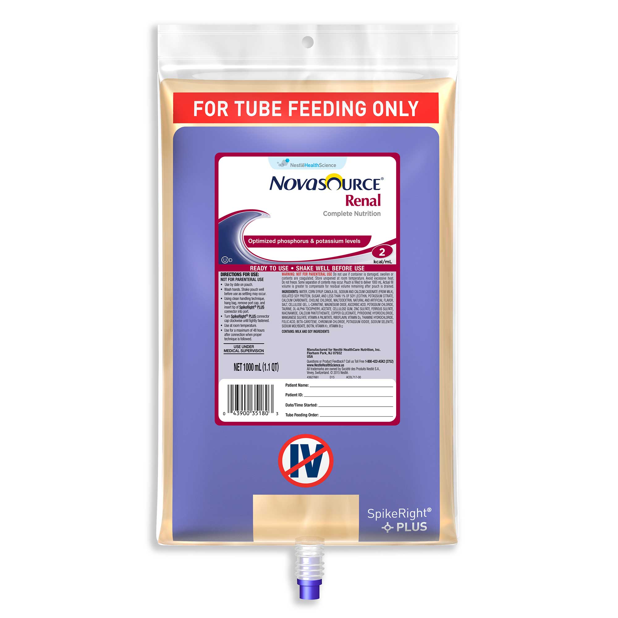 Novasource Renal Nutritional Support - Spikeright, 100 Milliliter -- 6 per case.