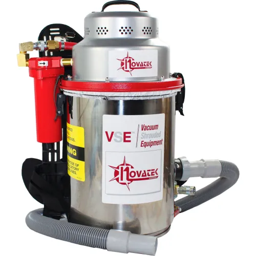 Novatek™ 3.3 Gallon Air Backpack HEPA Vacuum - Novatek offers a range of Pneumatic and Electric HEPA Vacuums, specifically designed to work with our VSE product line. Available in backpack and floor models. Engineered for the recovery of lead, asbestos, mold and other hazardous or non-hazardous materials.ApplicationsUse in difficult to access areasPerfect for attaching to scaffolding or boom trucksHaz Mat removal and recoveryFeatures & BenefitsUltimate portabilityPerfectly matched to Novatek Vacuum Shrouded Equipment3.3 gallon steel recovery tank4 stage filtration assures long HEPA lifeCan be converted from backpack to floor vacuum in secondsIndividually tested and certified HEPA filtersIncludes 6' x 1.5" of crush proof vacuum hoseAir filter/dryer standardIntegrated live air inlet with shutoff for connecting pneumatic tools, Lot of 1