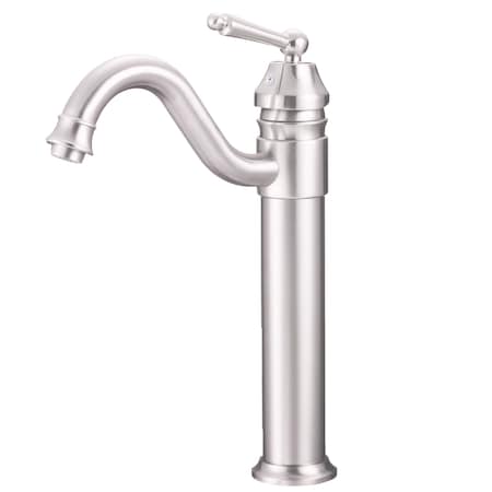 - Vessel faucet with brushed nickel finish; Single handle control