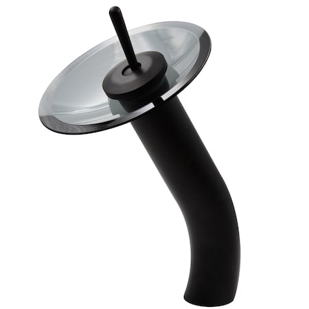 Waterfall Vessel Faucet, Matte Black Finish with Smoked Glass