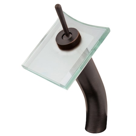 - Waterfall faucet with oil rubbed bronze finish and clear glass; Single handle control