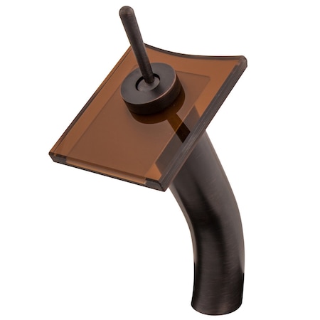 - Waterfall faucet with oil rubbed bronze finish and brown glass; Single handle control