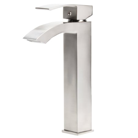 Single Handle Contemporary Vessel Faucet, Brushed Nickel Finish
