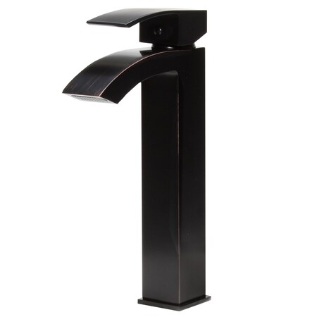- Waterfall vessel faucet with oil rubbed bronze finish; Single handle control