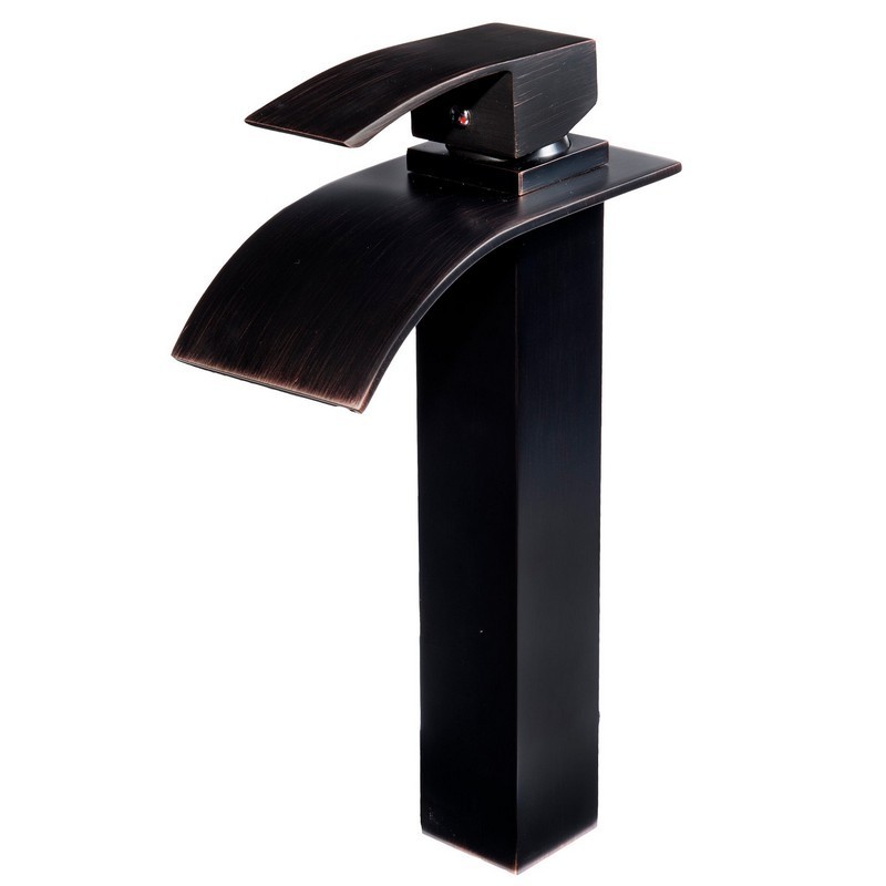 - Waterfall vessel faucet with oil rubbed bronze finish; Single handle control