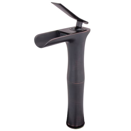 - Waterfall vessel faucet with Oil Rubbed Bronze finish; single handle control