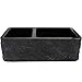Novatto Reversible 60/40 Double Bowl Kitchen Sink in Black Granite with Natural Chiseled Apron
