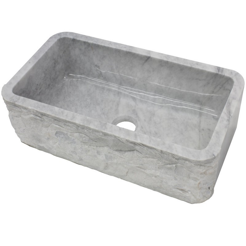 Novatto (NOVB0) Single Bowl Kitchen Sink in Carrara White Marble with Natural Chiseled Apron (NKS-SBNCW)