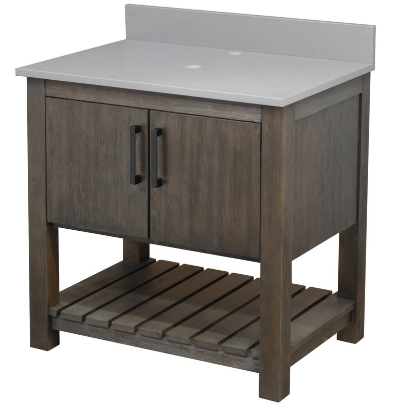 NOVATTO NOBV-30CM-280MB 30 INCH FREE-STANDING SINGLE BATHROOM VANITY WITH QUARTZ TOP, CAFE MOCHA, MATTE BLACK
