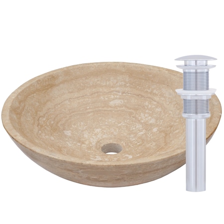 Novatto Beige Travertine Vessel Sink and Chrome Umbrella Drain