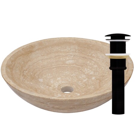 Novatto Beige Travertine Vessel Sink and Matte Black Umbrella Drain