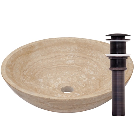 Novatto Beige Travertine Vessel Sink and Oil Rubbed Bronze Umbrella Drain