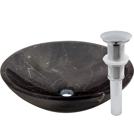 Novatto Coffee Marble Vessel Sink and Chrome Umbrella Drain