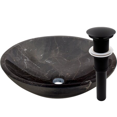 Novatto Coffee Marble Vessel Sink and Matte Black Umbrella Drain