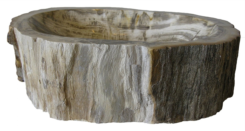 - Irregular petrified fossil wood vessel sink with chrome umbrella drain included