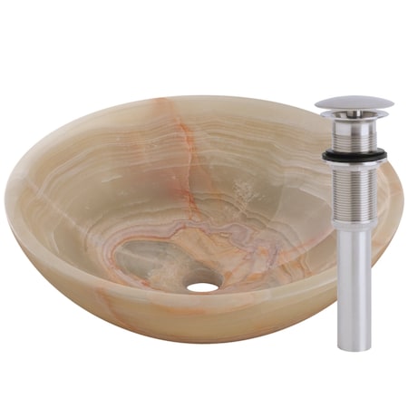 Novatto Green Onyx Vessel Sink and Brushed Nickel Umbrella Drain