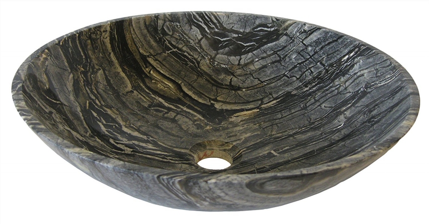 Novatto NOSV-LMBN Lunar Marble Vessel Sink & Brushed Nickel Umbrella Drain
