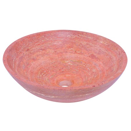 - Round travertine vessel sink, red tones