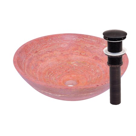 Novatto NOSV-RTORB Red Travertine Vessel Sink & Oil Rubbed Bronze Umbrella Drain