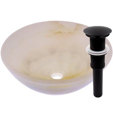 Novatto White Onyx Vessel Sink and Matte Black Umbrella Drain