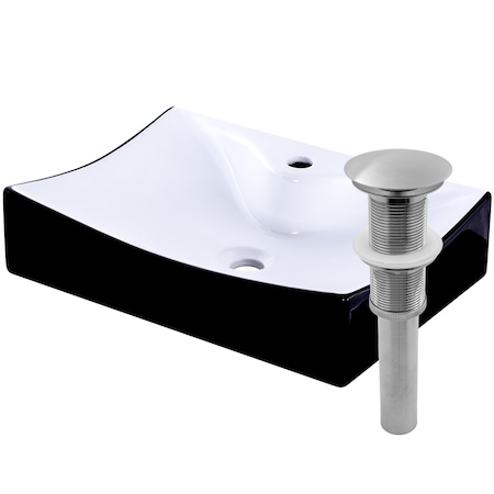 Novatto Black and White Porcelain Bath Sink with Brushed Nickel Pop-up Drain