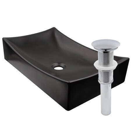 Novatto (NOVB0) Modern Matte Black Porcelain Vessel Sink Set with Chrome Drain and Sealer (NP-01141MBCH)