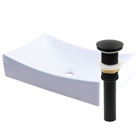 Novatto Modern White Porcelain Vessel Sink Set with Matte Black Drain
