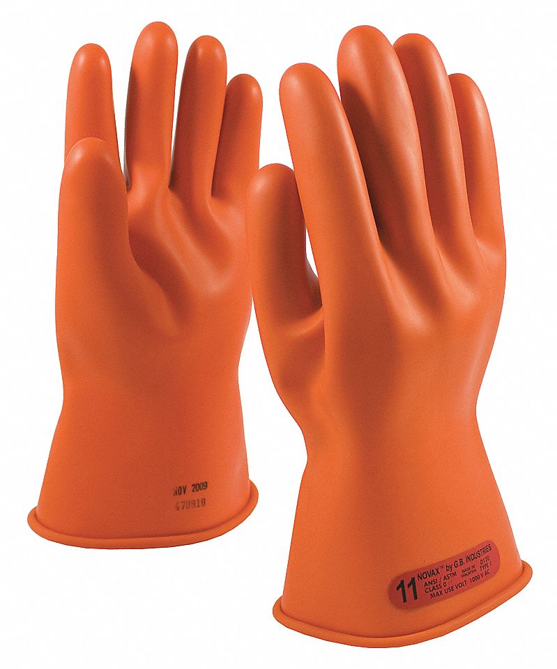INSULATING GLOVES, STRAIGHT CUFF, CLASS 0, MAX USE 1000 V, SZ 11, ORANGE, 11 IN, NATURAL RUBBER