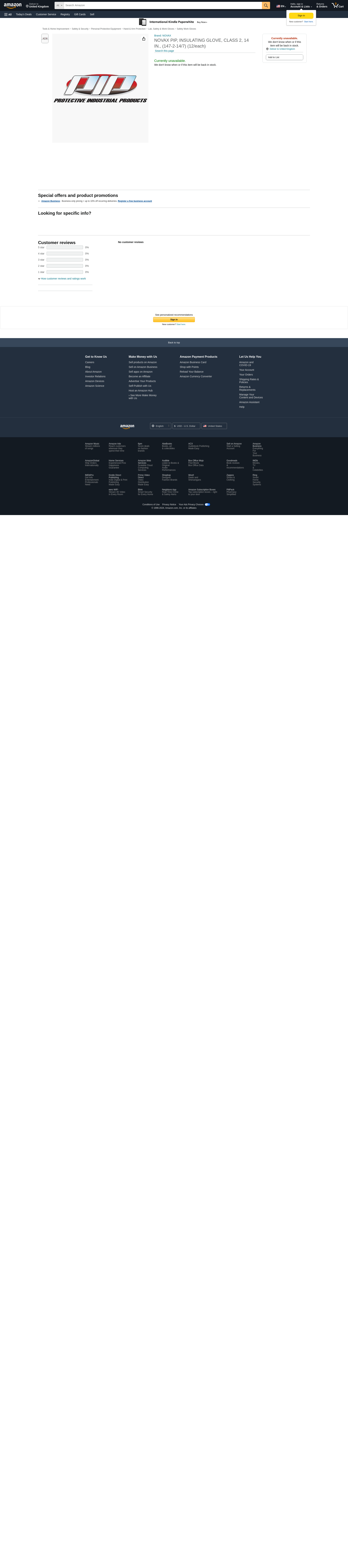 PIP NOVAX, INSULATING GLOVE, CLASS 2, 14 IN., (147-2-14/7) (12/each)