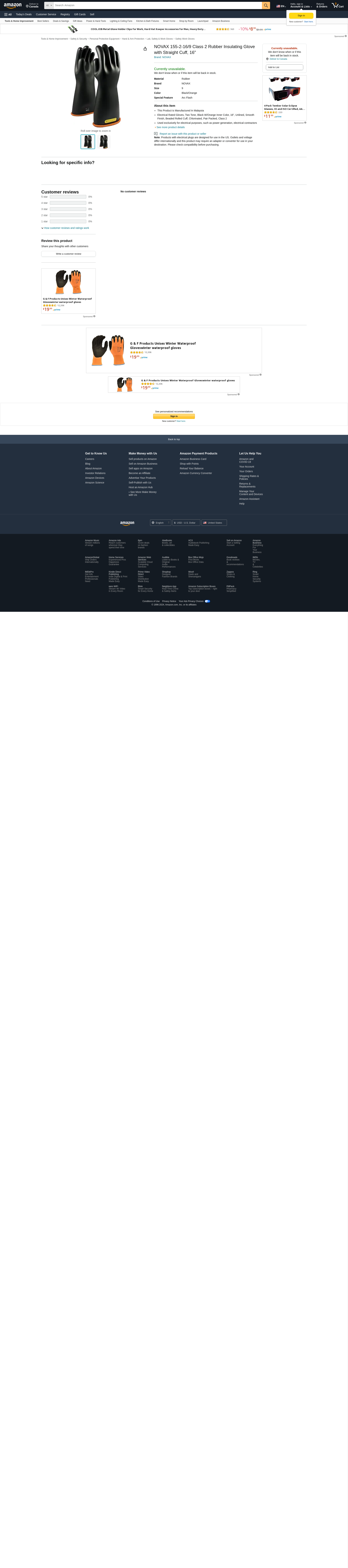 NOVAX 155-2-16/9 Class 2 Rubber Insulating Glove with Straight Cuff, 16"