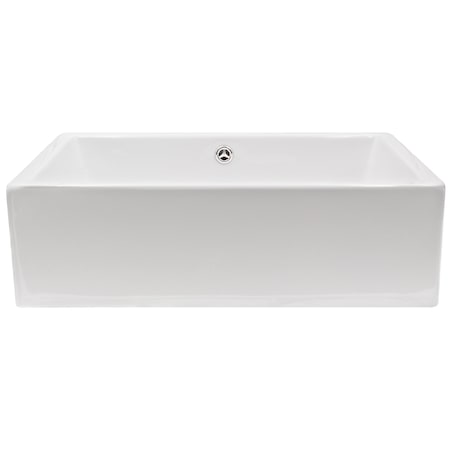 - Rectangular bright white glossy porcelain vessel sink with overflow