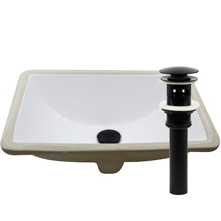 Novatto (NOVB0) Rectangular Undermount White Porcelain Sink with Matte Black Drain Set (NP-U193902MB)