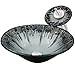 Presenting a statement in the bath with Novatto's exclusive hand painted glass vessel and matching chrome waterfall faucet. The painted vessel features a striking hand-painted design of dark blue, black and silver. Novatto uses advanced technology, including computerized glass processing and Italian furnaces, to produce glass basins of unmatched structural integrity. This vessel sink and faucet combo is a great way to harmonize the decor by unifying the color and textural design of your bathroom. The matching faucet disc directs the water flow into a graceful waterfall. When a bath demands superior design and quality, Novatto's glass vessels add that touch. Each glass sink and faucet features its own beauty of color, structural character and texture, adding a sense of unity to the bath.Glass vessel sinks can be used either in a powder room as a focal point or in a master bedroom for everyday use. The vessel is constructed from thick half-inch high tempered glass. The waterfall faucet is constructed from solid brass with a high pressure ceramic cartridge. Faucet is AB1953 Low Lead Compliant, cUPC and NSF certified. A single handle controls temperature and water flow. This sink and faucet set is designed for an above-counter, single-hole installation. The sink has a 1.75-inch drain opening for standard plumbing connections. A matching chrome mounting ring and pop-up drain are included. To keep this looking like new simply apply the included Glacier Ice sealer! Glass Vessel Dimensions: 17.25" x 5.5", Spout Height: 8.625 inches; Spout Reach: 3.625 Inches.