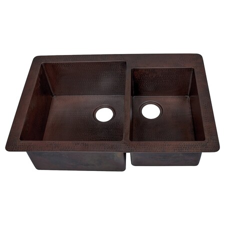 - 60/40 split undermount kitchen sink; Hand-hammered antique finish